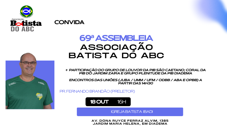 Evento terá pastor Fernando Brandão como preletor e será em Diadema