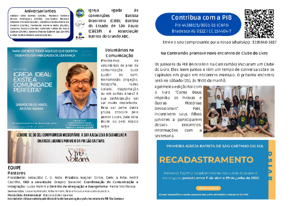 Igreja terá especiais do ministério infantil e do coral misto